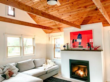 For our clients Christopher Makos and Paul Solberg we helped design a space that was functional as a working studio space that was also aesthetically pleasing. The stairs were designed to encase the existing attic stairs without disturbing the newly renovated second floor of the home. For the existing HVAV ducting in the space customer removable benches were constructed to make the space functional and complete the modern design of the stairs.